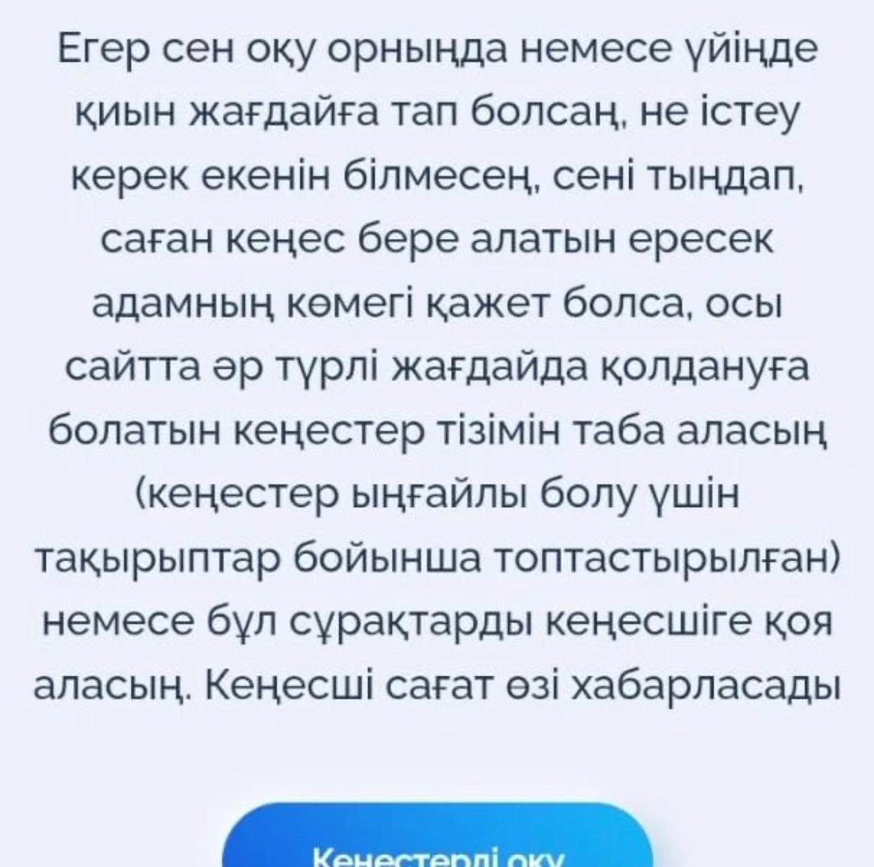 Қазақстан Республикасы Білім және ғылым министрлігі «Менің Атамекенім» ҚБ-мен бірлесіп, Қазақстан оқушылары мен олардың ата-аналарына тегін консультациялық көмек көрсету бойынша «Bala Qorgau» Веб-сайты жобасын іске қосты.
